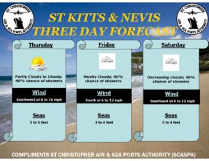 settled weather today. Beginning early this evening, at most, a moderate chance of showers is forecast for Barbados and the southern Windward islands while the islands to the north of that area could see unsettled weather mainly after midnight associated with the approaching area of disturbed weather.