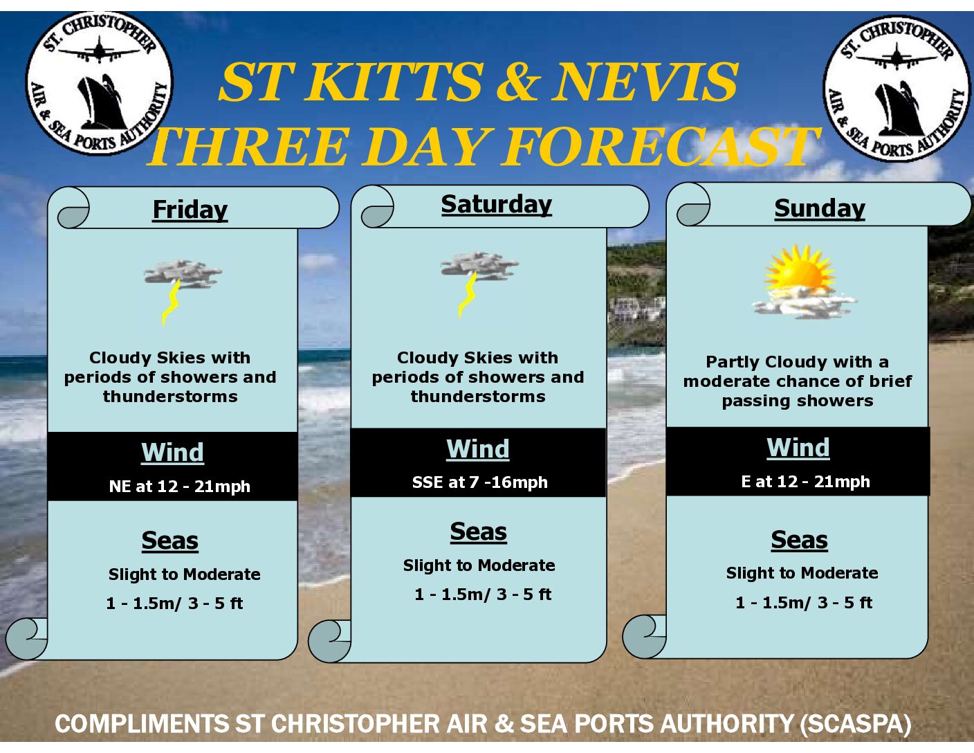 Seas: 1 – 1.5m or 3 – 5ft.
