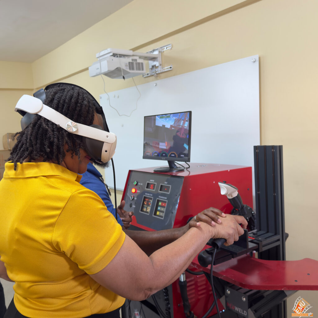 Among the key locations visited was the Christopher-Wilkin Institute of Technology (CWIT), where significant equipment upgrades are currently underway. Some equipment includes a Virtual Welding Simulator, which allows students to weld using an electronic simulating device, a smart board, and a smart projector that allows connections to other technical schools in Nevis for remote communication and collaboration.