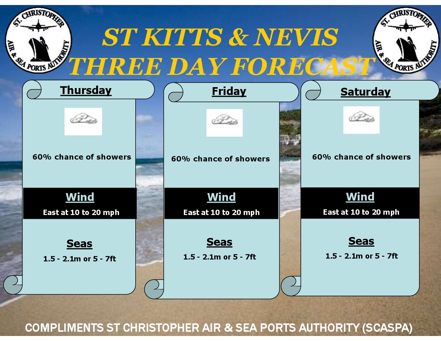 Weather Forecast for St. Kitts & Nevis: Lingering moisture and instability in association with a trough system will maintain a moderate chance of showers over the next 24 hours.